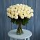 Букет из белых роз — это идеальное воплощение элегантности и утончённости. Нежные бутоны классической формы, собранные в плотную, роскошную композицию, словно созданы для особых моментов. Светло-кремовый оттенок символизирует чистоту чувств, искренность и гармонию, а зелёная листва подчёркивает свежесть и натуральность букета.